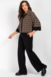 Костюм жакет и брюки прямого силуэта из трикотажа VIZAVI 812 кэмел+черный
