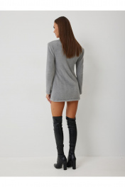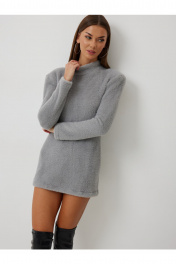 Платье: – приталенный силуэт – горловина-стойка – плечевые накладки.