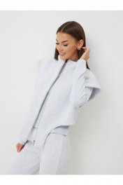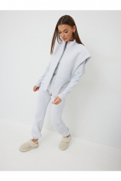 Жилет: – свободный силуэт – металлическая разъёмная молния – спущенное плечо Лонгслив: - прилегающий силуэт - воротник-стойка Брюки: – приталенный силуэт – без карманов – пояс с эластичной тесьмой – низ брюк на эластичной тесьме.