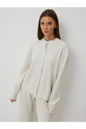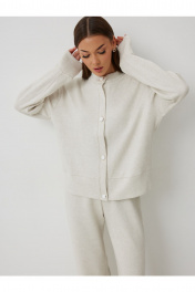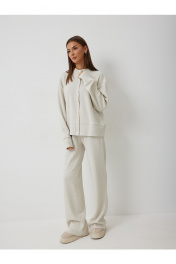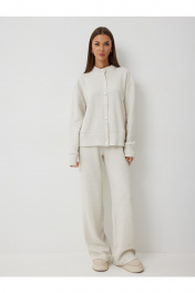 Джемпер: – свободный силуэт – застёжка на декоративных пуговицах – спущенный рукав на манжете – воротник-стойка Брюки: – прямой силуэт – пояс с эластичной тесьмой – без карманов.