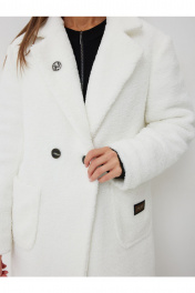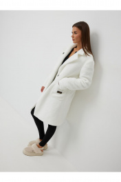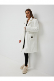 Пальто (буклированная ткань): – прямой силуэт – воротник пиджачного типа – двухбортный – рукав двухшовный – спущенное плечо – накладные карманы – застёжка петли-пуговицы – декоративное украшение – нашивка на кармане.