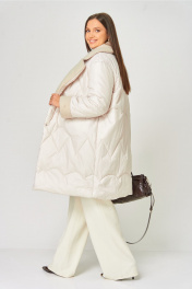 Пальто стёганое, прямого силуэта: – длина миди – воротник пиджачного типа (из букле) – двухбортное – по переду — прорезные карманы с листочкой – рукав спущенный, одношовный – манжеты из букле – по переду — двубортная застёжка – застёжка на потайные пробивные кнопки – на подкладке – утеплитель Isosoft 250 г.