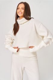 Джемпер: – свободный силуэт – высокий воротник – рукав спущенный, одношовный – манжеты-митенки на рукаве из кашкорсе.