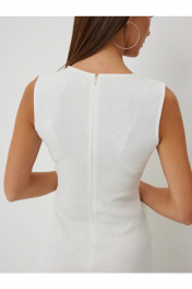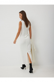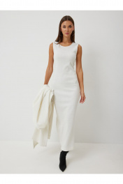 Платье макси: – приталенный силуэт – потайная молния по середине спинки – разрез снизу по спинке – без рукавов – овальная горловина.