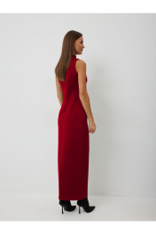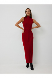 Платье макси (ткань джерси): – приталенный силуэт – потайная молния по середине спинки – разрез снизу по спинке – без рукавов – горловина-стойка.