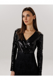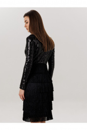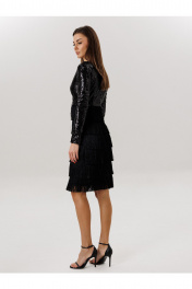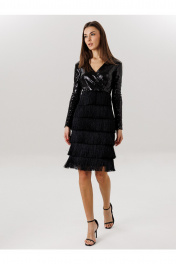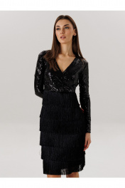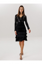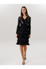 Платье: - с бахромой - ткань :пайетка + бахрома -приталенный силуэт , -на потоцкой молнии по спинке , - на подкладке , - 7 рядов бахромы.