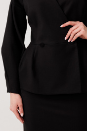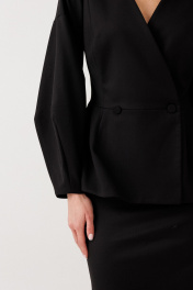 Жакет: – приталенный силуэт – двухбортный – декоративная застёжка петли-пуговицы – спущенный рукав-фонарь.