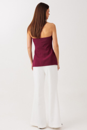 Брюки: - облегающего силуэта, - расклешенные к низу функциональные карманы в боковых швах, - выполнены из костюмной ткани, - застёжка петли - пуговицы и брючная молния.