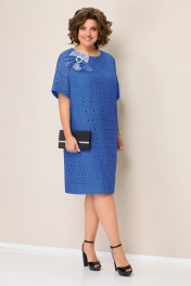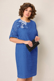 Нарядное платье полуприлегающего силуэта из хлопкового текстиля. Рукав платья на цельнокроеной основе. Длина платья- 99 см по центру спинки. Украшение- брошь в комплекте изделия..