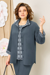 Блуза, брюки, жакет VOLNA 1427 темно-гобубой