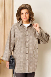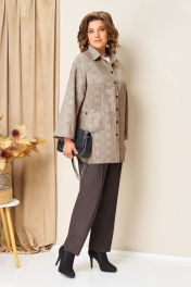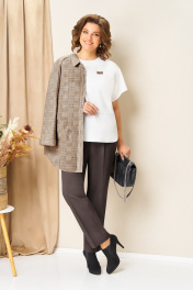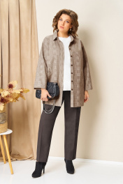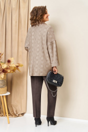 Блуза, брюки, жакет VOLNA 1438 коричневый(клетка)
