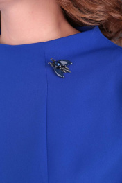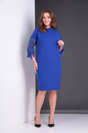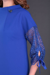 Платье свободного силуэта "фасолька", выполнено из костюмно-плательной ткани. По спинке застежка на тесьму-молнию. Рукав спущенный, выполнен из гипюра., по низу собран на киперную ленту.