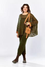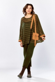 Комплект из брюк-бананов и пончо из вельвета и букле ZigzagStyle 499 хаки