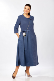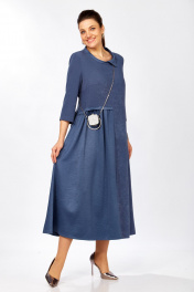 Нарядное платье полуприлегающего силуэта в иысканном дымчато-голубом оттене, отрезное по линии талии с обтачными планками. Полочки с нагрудными вытачками, которые выходят из бокового шва. Нижняя часть платья А-силуэта с одной стороны по линии талии с образованием мягких складок. Особенно выиграшно оно смотрится на фигуре, где надо прикрыть живот и бедра. Рукав втачной одношовный, длиной ¾. Вырез горловины округлой формы со стойкой и фантазийным воротником. Пошито платье из двух видов плательной ткани-бархатистой и шелковистой структуры. В этом наряде вас заметят на любом торжестве!!!
